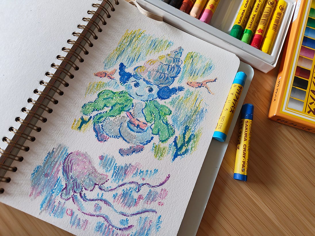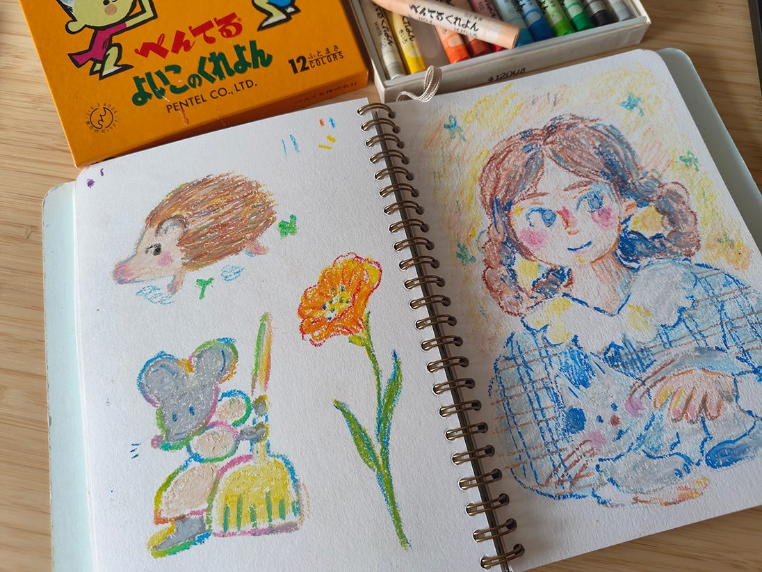 I say “difficult” because I haven't used these kind of crayons for years and years, maybe I was a child the last time I picked one up. It's hard to make small details and to make the colors blend well. In a way that difficulty of having to start from scratch, has made me enjoy the process of learning something and making mistakes without fear.